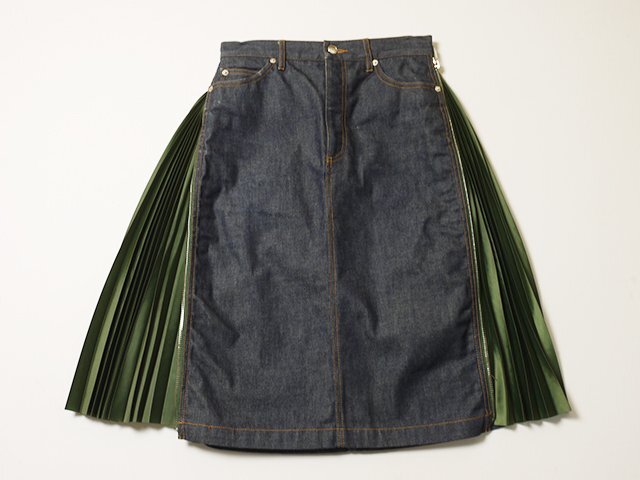 > APC アーペーセー Sacai サカイ デニムスカート 正規品 サイズ34 コラボ 21E2-PSAFF-F06325 サイドジッププリーツデニムスカート