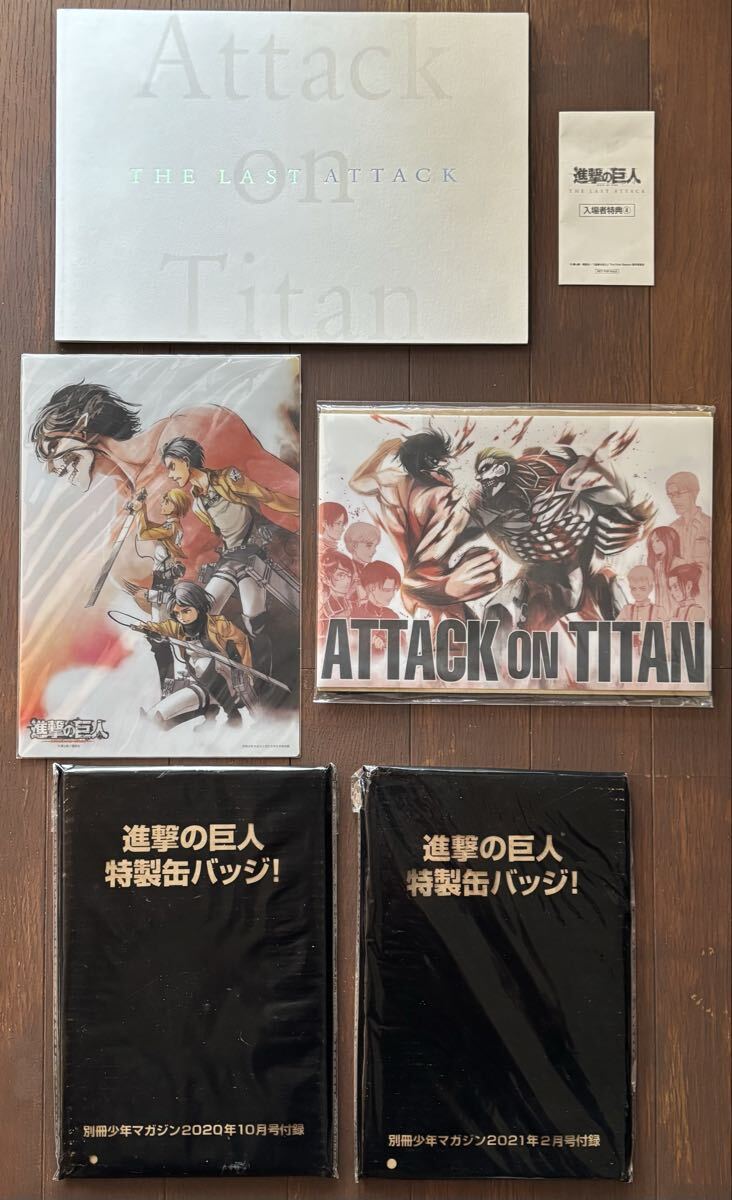 - 【送料込】劇場版 進撃の巨人 パンフレット/入場者特典④/別冊少年マガジン付録缶バッジ2種/クリアファイル/ブックカバー 6点セット
