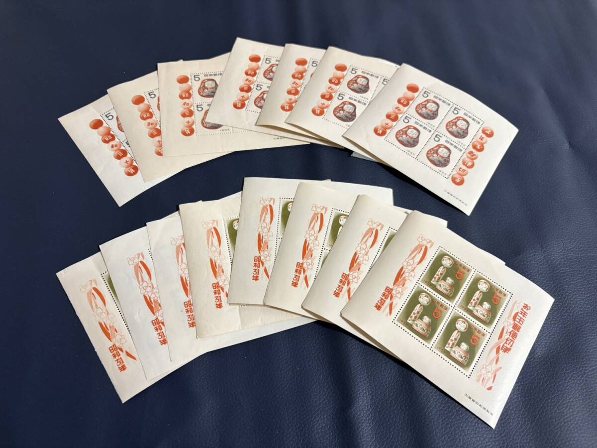- ★日本切手 年賀切手シート昭和30年・31年 おまとめセット15枚★kn17