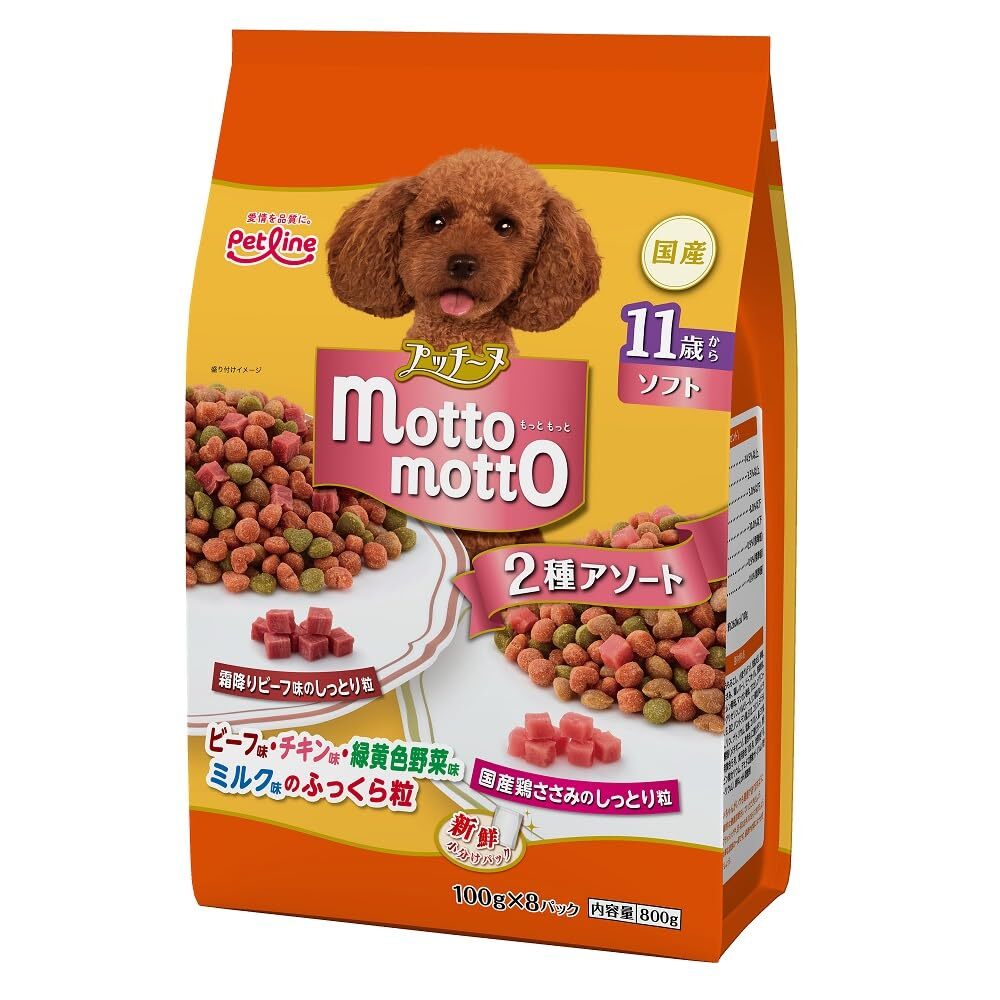 - いぬのしあわせ ペットライン プッチーヌ motto motto ソフト 11歳から 800g(100g×8) 半生 国産 アソート 小分け 8