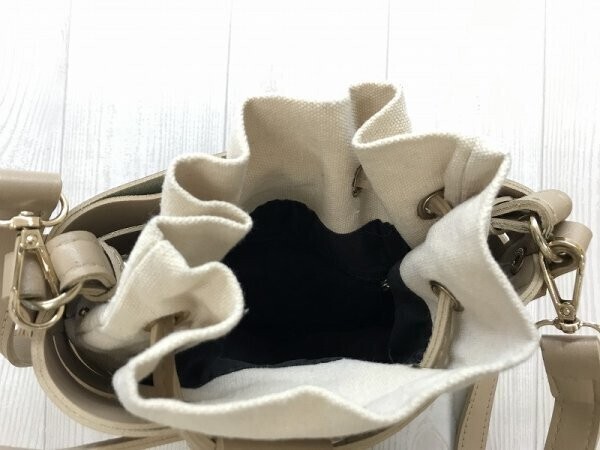 - レディース メッシュ レザー巾着 ショルダーバッグ ベージュブラウン