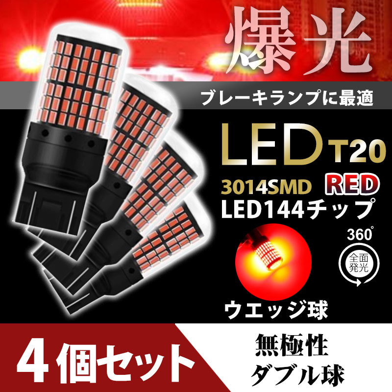 > T20 LED ブレーキランプ ダブル球 4個 ハイマウント ストップランプ 赤 爆光 高輝度 3014 カスタム カー用品 新品 led 車検 144連 全面 014