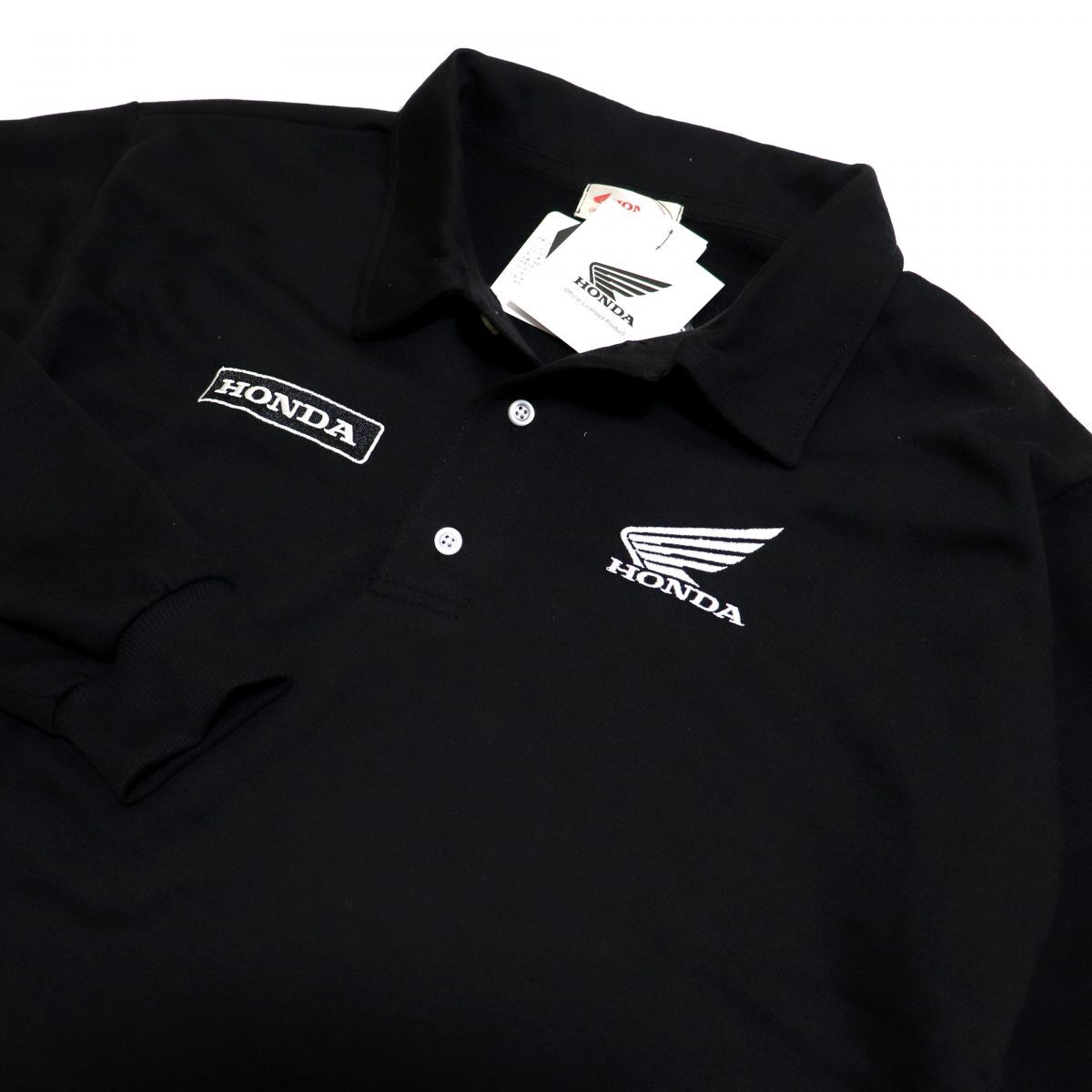 - ★ホンダ HONDA 新品 メンズ カジュアル ロゴ刺繍 スウェット ポロシャツ トレーナー 黒 Lサイズ [Q530035NT-BLK-L] 一 三 弐★QWER