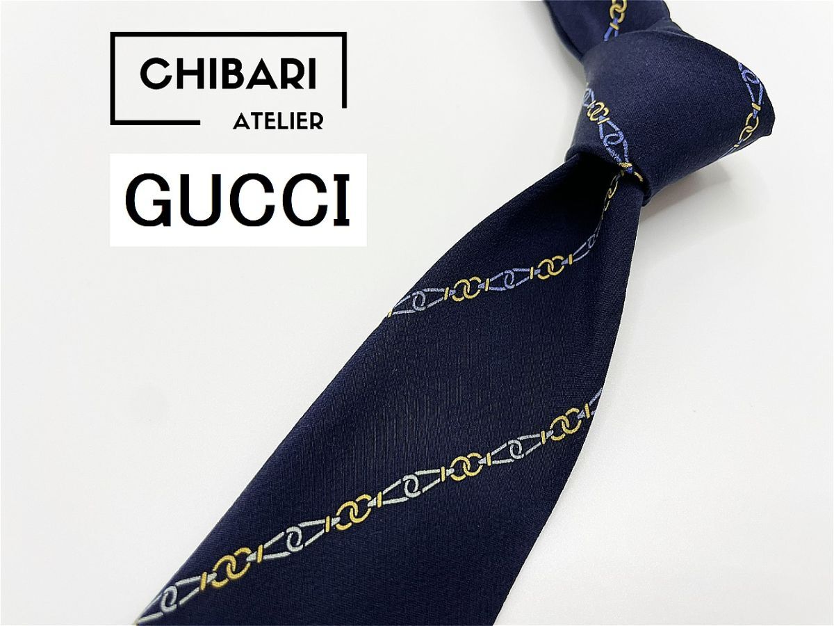 - 【美品】GUCCI グッチ ロゴ&レジメンタル柄 ネクタイ 3本以上 送料無料 メンズ ネイビー 0904261
