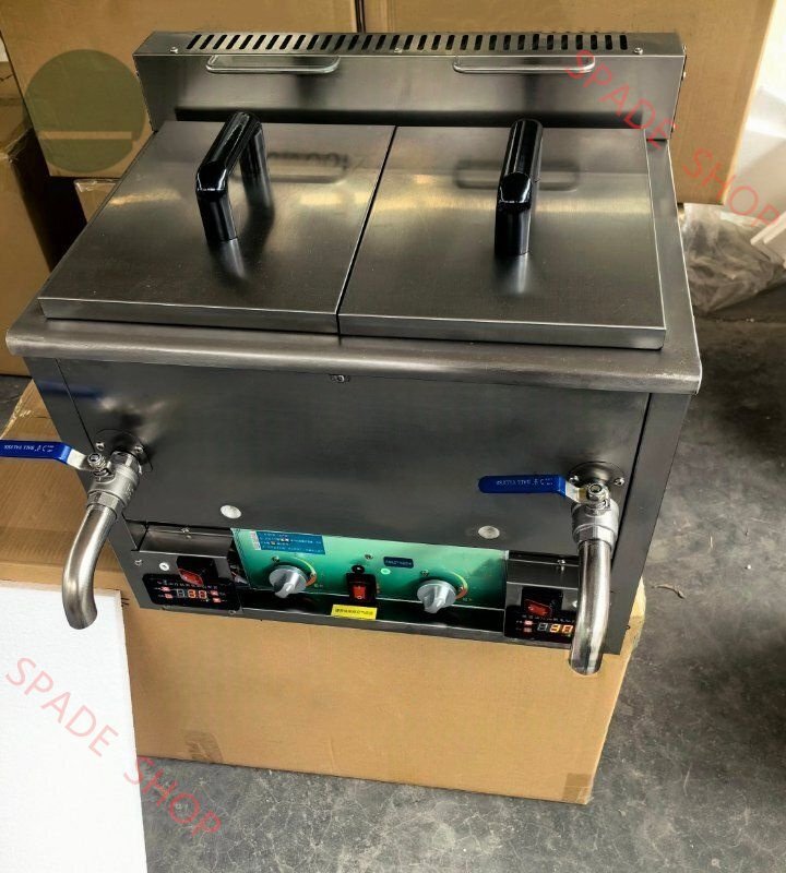 - LPガス ガスフライヤー 2槽式 10L×2 サーモスタット 温度調節機能付き デジタルディスプレイ付き