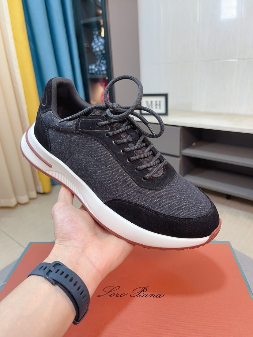 > ブラック26.5cm★送料無料★ロロピアーナ Loro Piana★メンズ スポーツシューズ, スエード&レザー, 防水カジュアル ランニングシューズ