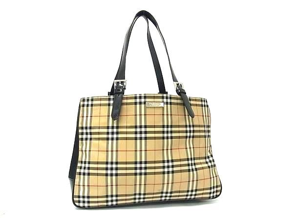 > 1円 ■美品■ Burberrys バーバリーズ ノバチェック ナイロン×レザー トートバッグ ハンドバッグ ショルダー 肩掛け ブラウン系 FP7999
