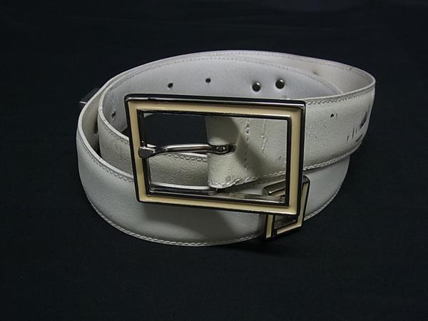 > 1円 FENDI jeans フェンディ ジーンズ ヴィンテージ ズッカ レザー シルバー金具 ベルト 表記サイズ 42 メンズ アイボリー系 FP8169