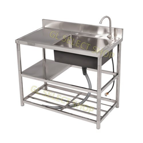 > 【幅100cm】屋外 流し台 ステンレス ガーデンシンク 作業台 キッチン 台所 シンク 組み立て簡単 高さ調節 調理台 頑丈 新作【シルバー】