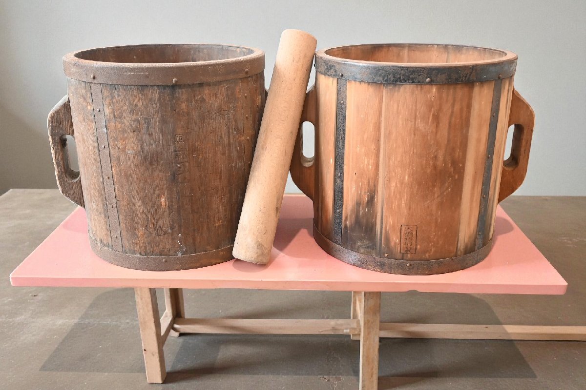 ○一斗枡 2点セット 円筒形 計量器 お米 斗かき棒つき 古民家 和モダン レトロ 昭和 ヴィンテージ 古道具のgplus広島 2510i拍卖