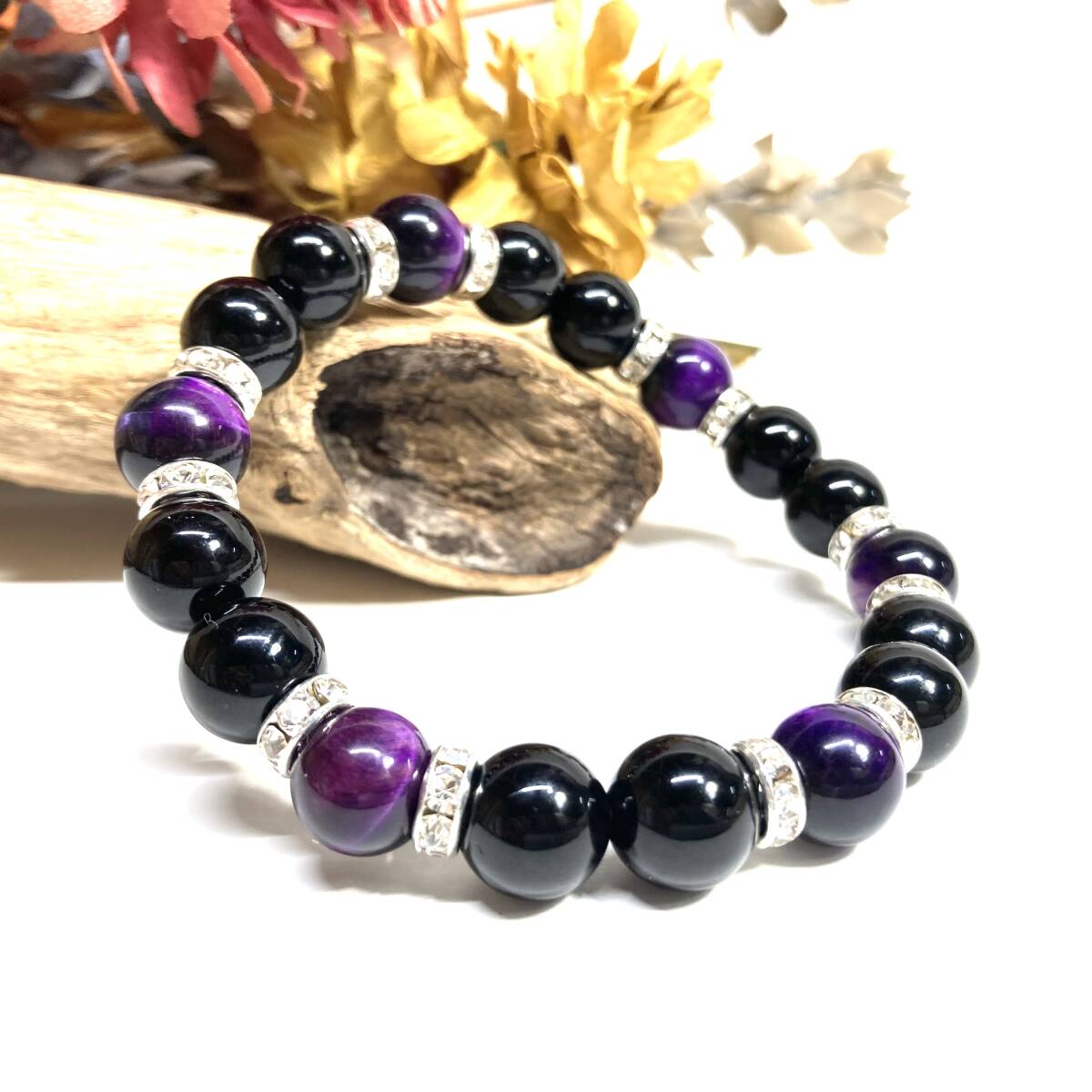 > モリオン&パープル タイガーアイ パワーストーン ブレスレット 天然石ブレス (シルバー) 10mm メンズ・レディース 厄除け 金運 ☆