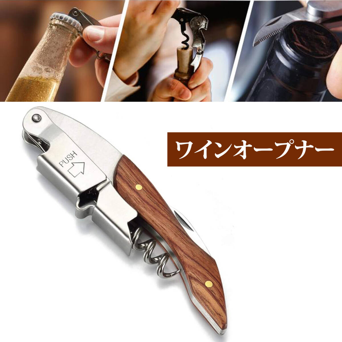 - ワインオープナー 栓抜き おしゃれ ソムリエナイフ 缶オープナー 瓶の蓋 オープナー 創意実木柄ワインオープナー 海馬ナイフ ;J6941;