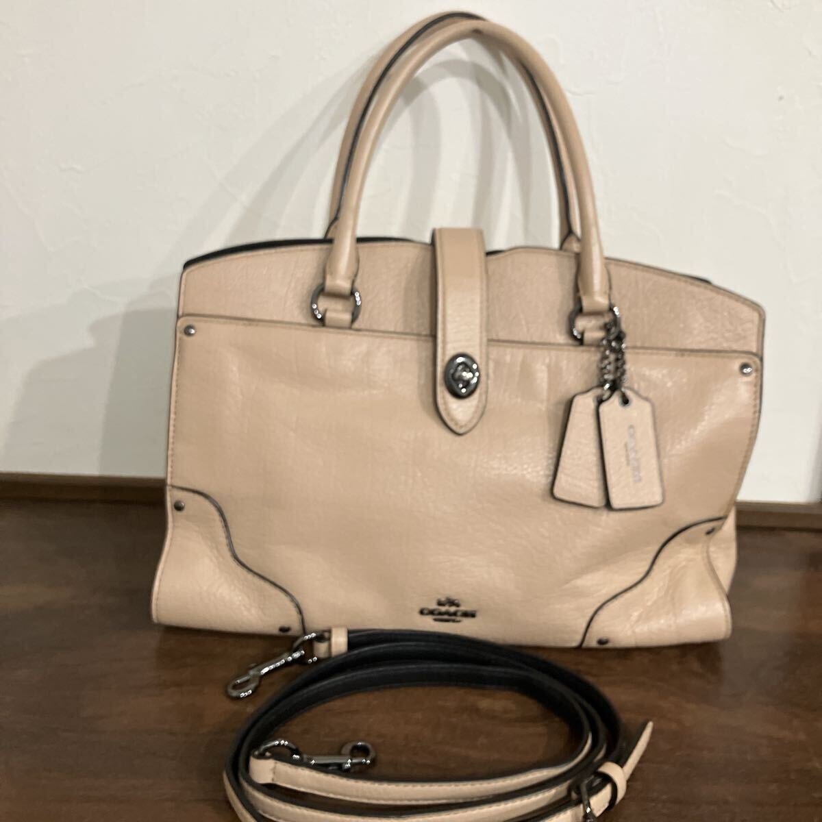 > M-25 COACH コーチバッグ 2WAY 斜め掛け ショルダーバッグ ハンドバッグ レザー ベージュ ブラック コーチ バッグ