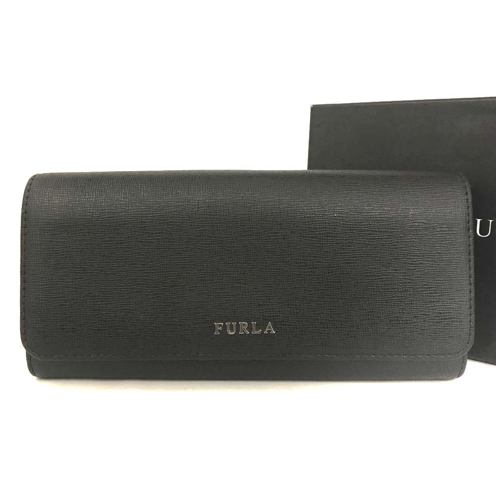 > 1円 美品 FURLA フルラ ロゴ PVCレザー 二つ折り長財布 ブラック /JP0800