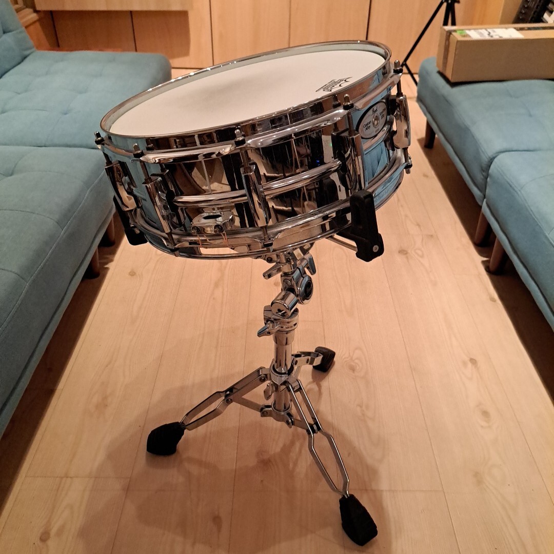 - 【美品】スネアドラム+スタンドセット(Pearl Custom Alloy Sensitone Elite/GYRO-LOCK SYSTEM)