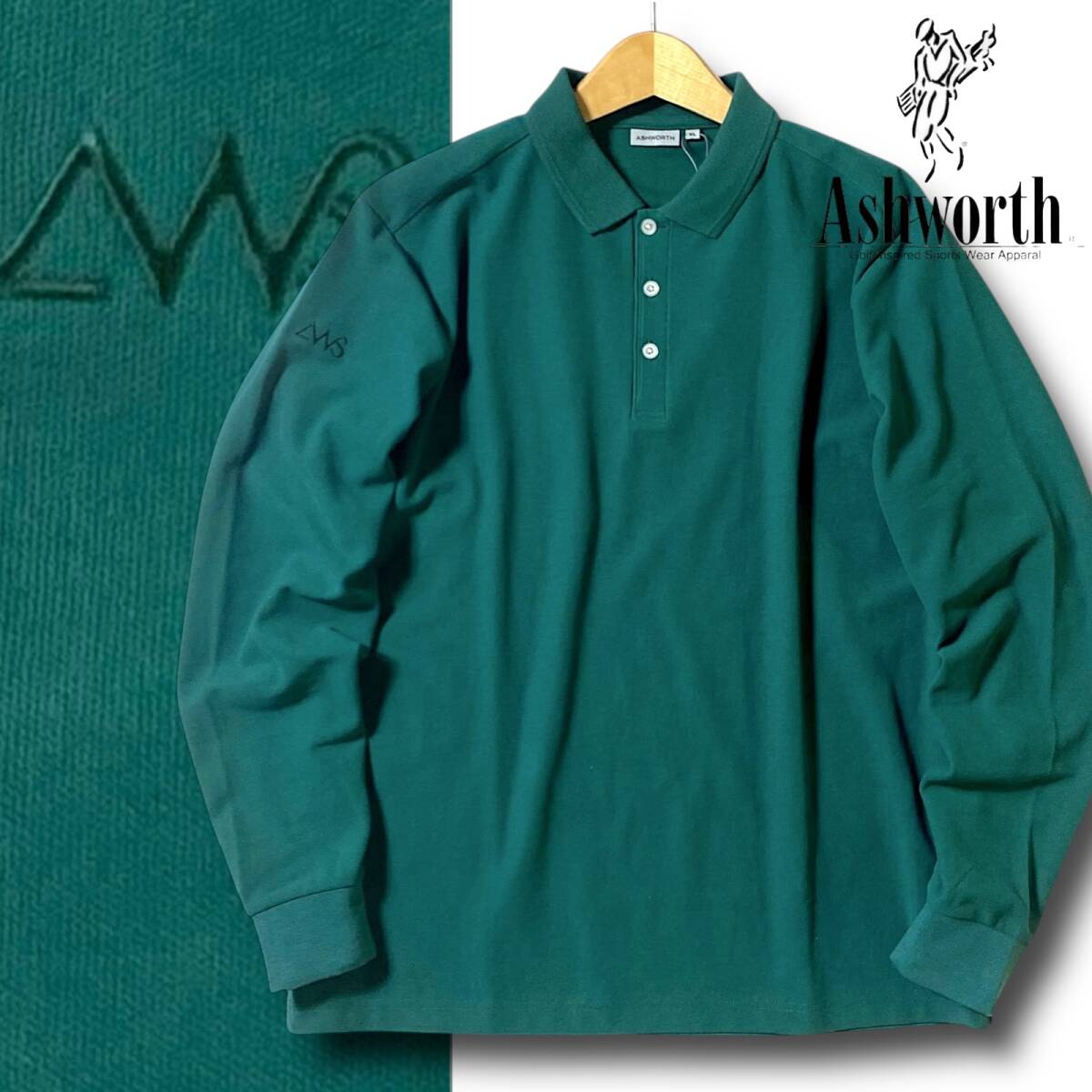 > 新品 アシュワース ゴルフ ASHWORTH GOLF 定1.5万 速乾 UVカット 通気性 ロゴ刺繍入り 鹿の子 ジャージー 長袖 ポロシャツ M 秋冬 P