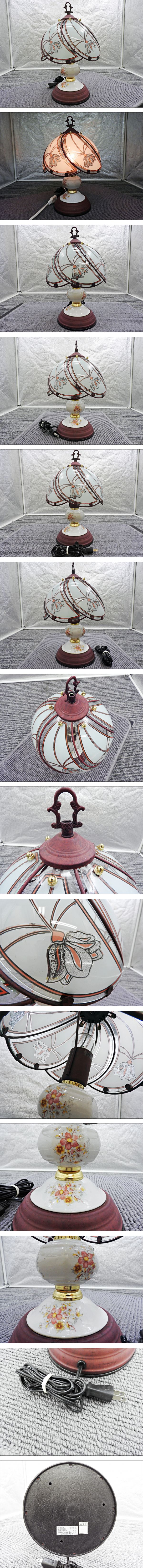 - 鹿野漆器■テーブルライト ガラスシェード 寝室用 ライト ナイトランプ レトロ■状態良好品「管理№KT1339」