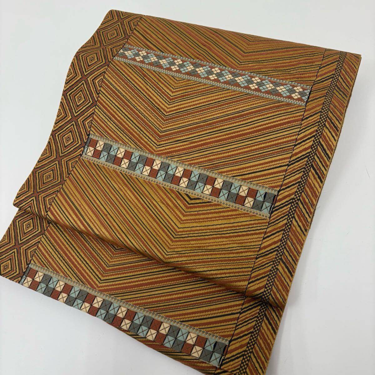 - 本場筑前博多織 名古屋帯 正絹 幾何学模様 八寸 着物F-867