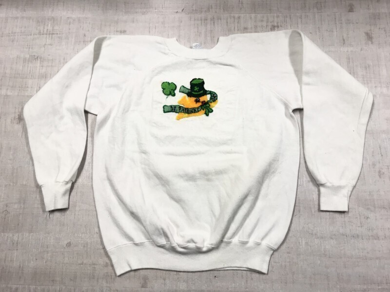 - USA製 ヘインズ Hanes HER WAY オールド アメカジ 90s US古着 St. Patrick's Day スウェット トレーナー レディース ラグランスリーブ L 白