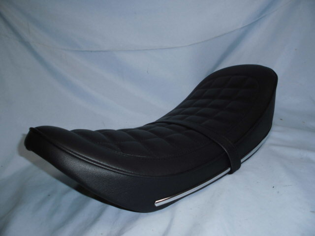 - ■ ダックス CB風 バナナシート 黒レザー カスタムシート ベルト付 DAX ST70 ST50 AB26 6V 12Vメッキモール付