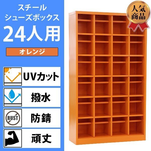 - 送料無料 ロッカー おしゃれ スチール シューズボックス 24人用 オレンジ オープンタイプ 棚板付き 扉なし 4列6段 UVカット 撥水 防錆 頑丈