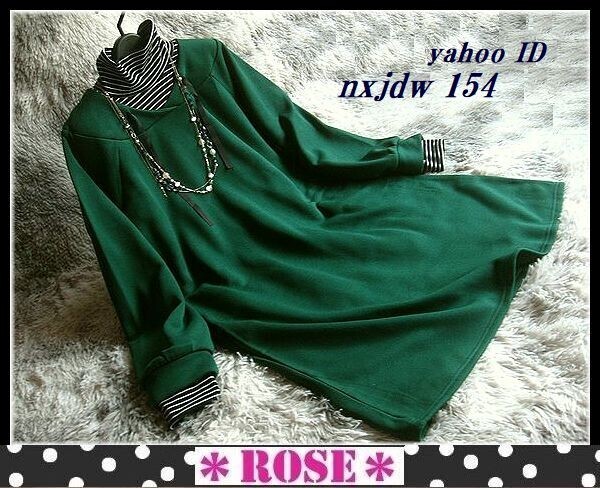 - ◆Rose◇ゆったりワンサイズ・重ね着みたい♪ちょこっとボーダーアクセントのチュニックワンピ/グリーン