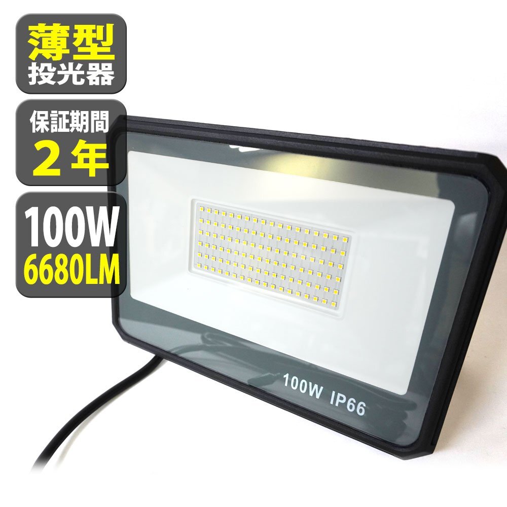 - 10%OFF★2個セット LED 投光器 100W 1000W相当 6680LM 昼光色 防水作業灯 IP66 壁掛け 舞台照明 ポータブル 看板灯 ACコード1.8m 送料無料