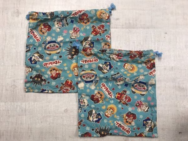 - のりものまん モービルランドのカークン レトロ NHK教育テレビ 巾着袋 小物入れ キッズ 2点セット 青