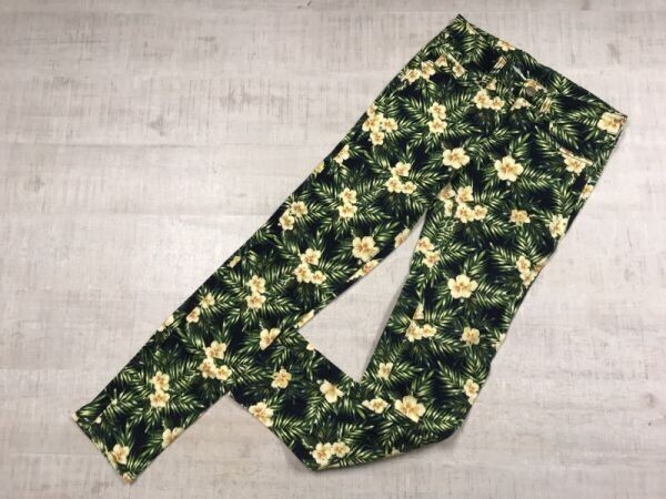 - ローリーズファーム LOWRYS FARM アロハ柄 サーフ 花柄 フラワー フローラル 総柄 スキニー レギンス パンツ ボトムス レディース XS 紺