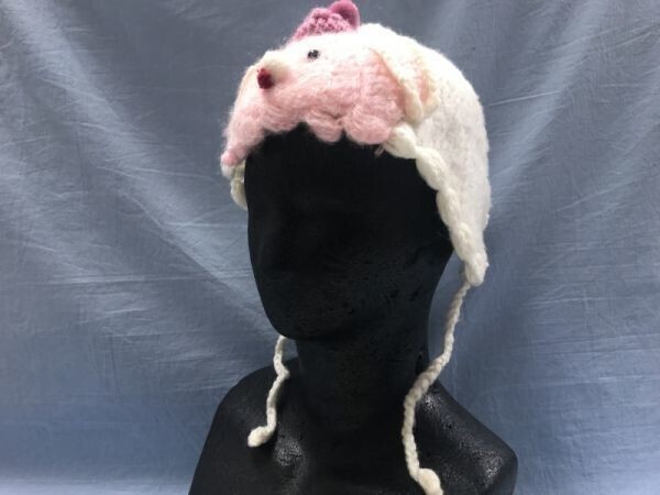 - キッズ ベビー 古着小物 キュート レトロ ふわもこ うさぎ ニット ポンポン装飾 ヘッドドレス 帽子 3点セット 白・生成り