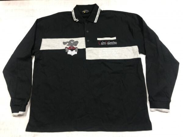 > Calro Valentino カルロバレンチノ オールド バブリー 昭和レトロ スポーツ ゴルフ ワンちゃん 犬 キャラクター 長袖ポロシャツ メンズ 黒