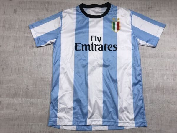 > 睡眠学習同担拒否 Fly Emirates ストライプ サッカー スポーツ クラスT ドライメッシュ 半袖 ユニフォーム Tシャツ メンズ F 水色