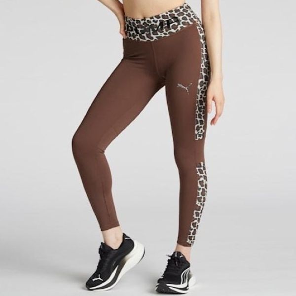 - プーマ レディース TRN EDGE タイツ Lサイズ 定価7150円 ブラウン/レオパード 茶色 ヒョウ柄 レギンス スパッツ UV フィットネス ヨガ