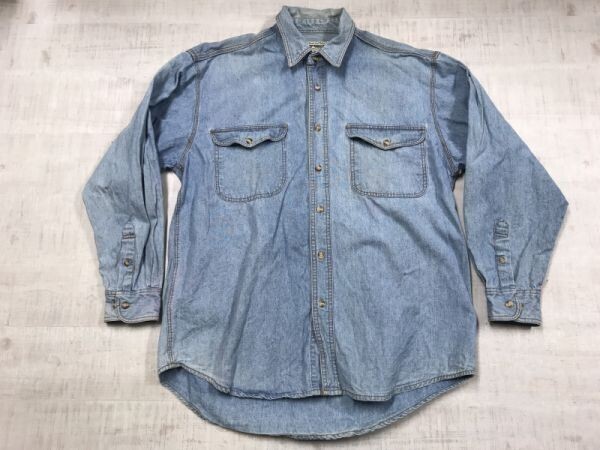 > ステップウォーク STEP WALK オールド レトロ アメカジ 90s 古着 両胸ポケット デニム長袖ワークシャツ メンズ M 青