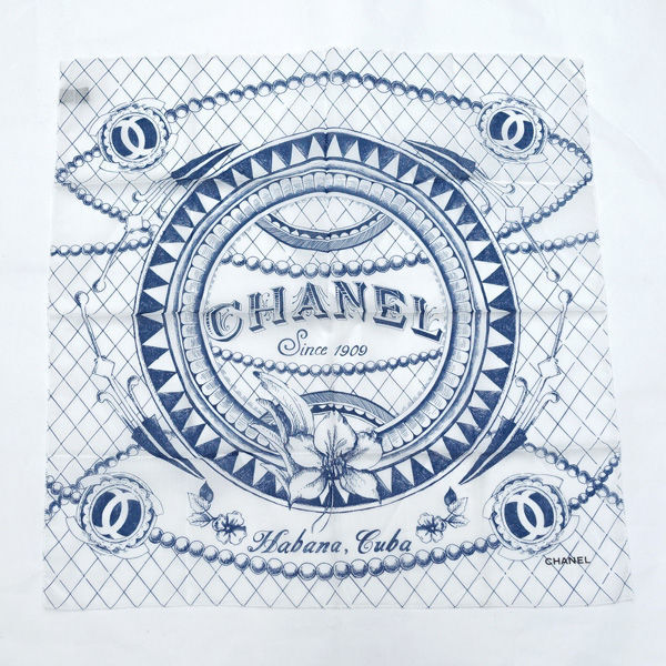 - ★ シャネル ココ スカーフ コットン シースルー 1909 ホワイト ブルー (0220539160)