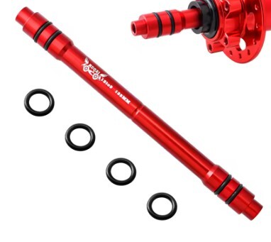 - 処分 Muqzi 12ミリEスルー 9ミリクイックシャフトに変更 135ミリ 赤色 1002 ゆうメール可