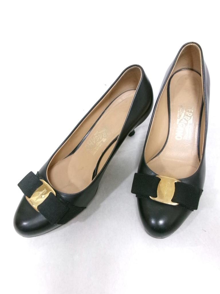 - 【送料込】 Salvatore Ferragamo サルヴァトーレフェラガモ ウエアー パンプス ブラック スムースレザー ヴァラリボン size5 22.5cm/974232