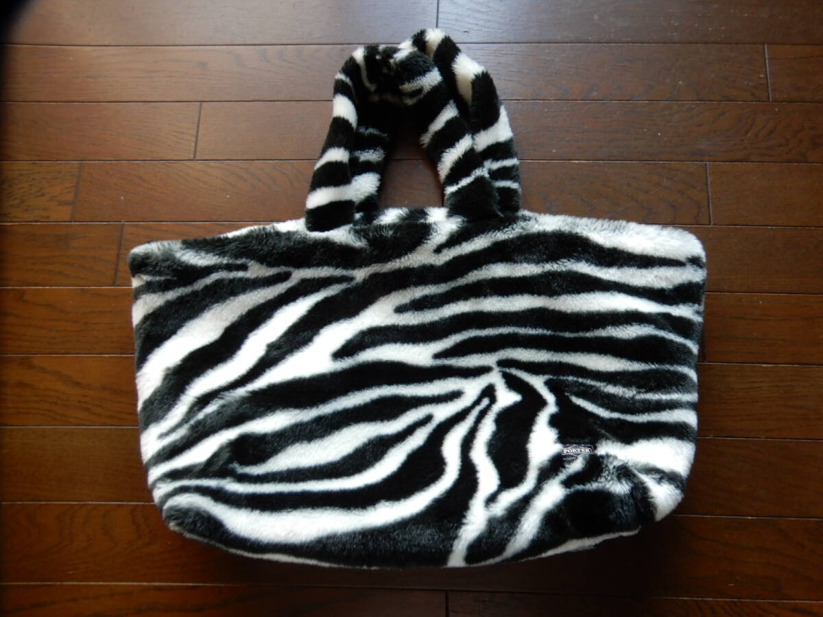 - 【PORTER/ポーター】A4サイズも楽に入る大きなファーバッグ 2wayフェイクファーアニマルゼブラ柄トートバッグ 吉田カバン 白黒