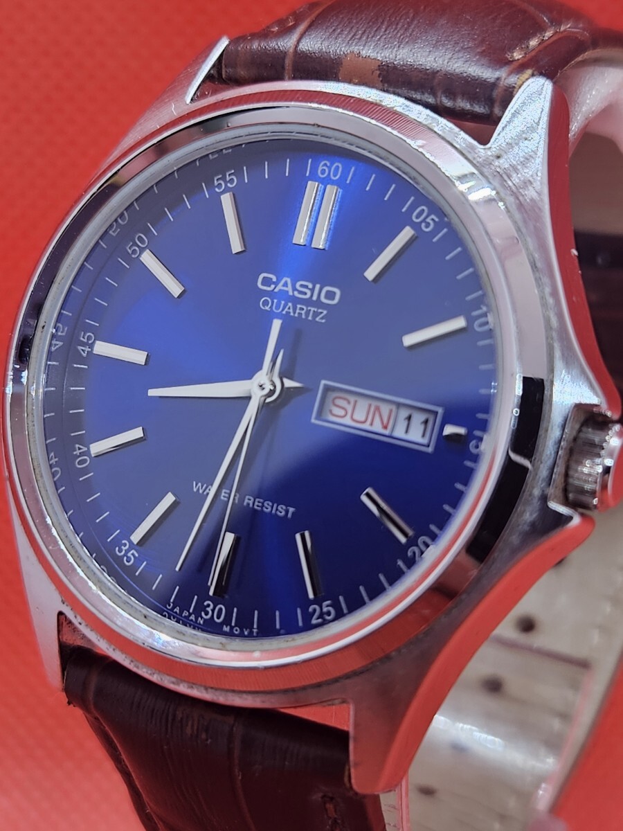 - 稼働品 美品 カシオ CASIO デイデイト メンズ腕時計 青文字盤 電池交換済み G3182
