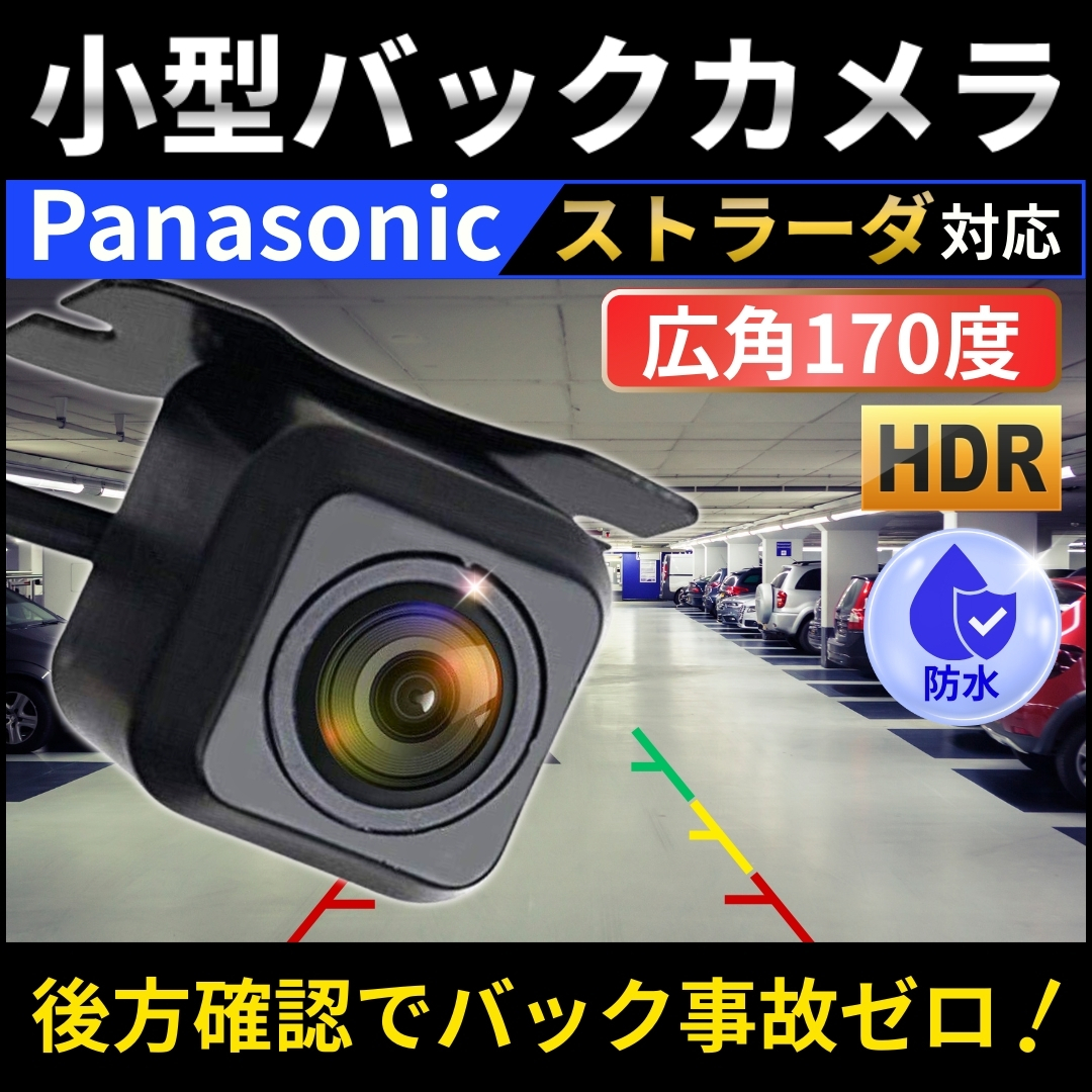 > Panasonic ストラーダ対応 高画質バックカメラ 小型 魚眼 広角 防水 後付け モニター配線延長 CNナビ ドラレコ連携 ガイドライン付 車載用