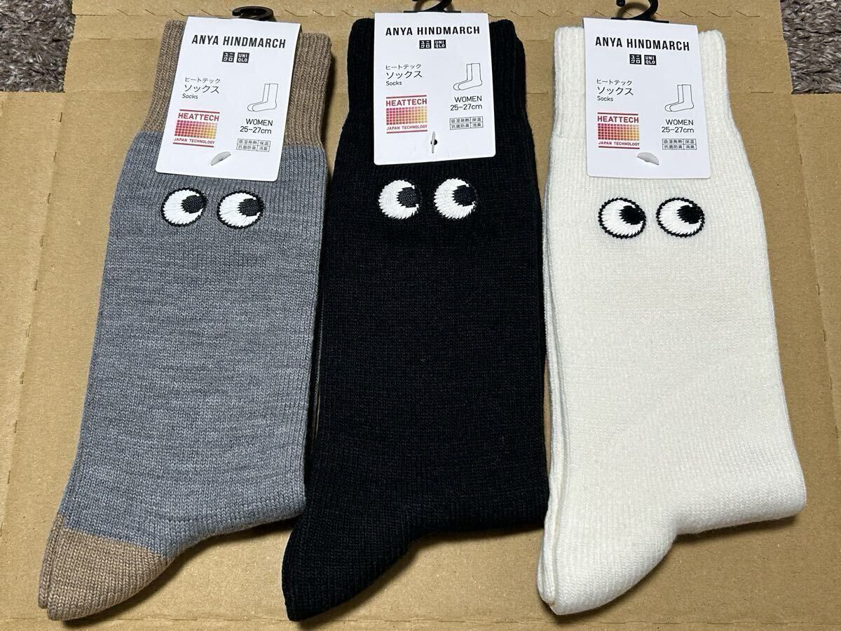 - 未使用2023AW ユニクロ アニヤハインドマーチ ヒートテックソックス 02ライトグレー09ブラック00ホワイト 25-27cm 靴下3足 ANYA HINDMARCH