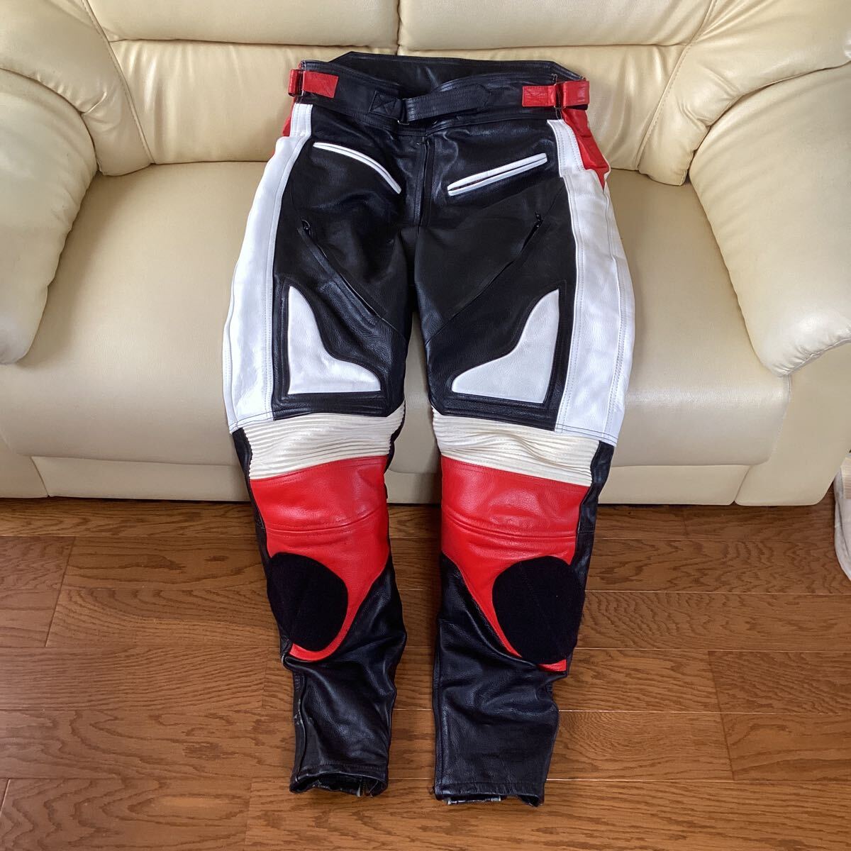 > サイズ:36 VERDY レザーパンツ ブラック/レッド/ホワイト 使用感あり キズ・スレ・汚れあり 腰・ヒザにソフトパッド入り