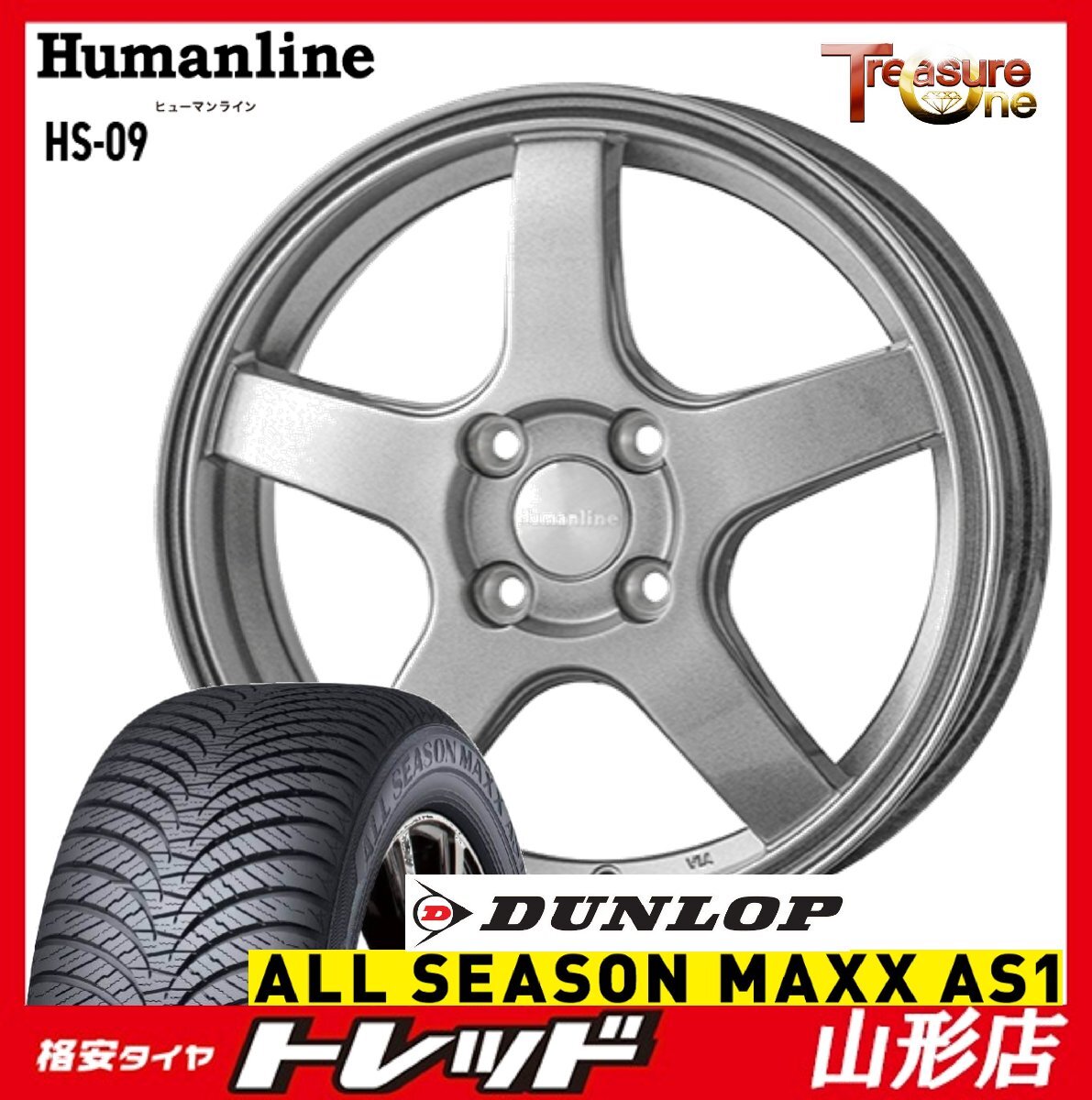 > 山形店 新品 タイヤホイールセット Humanline HS-09 16インチ 6.0J 4H100 +40 DG DUNLOP オールシーズンマックスAS1 205/55R16 2024年製