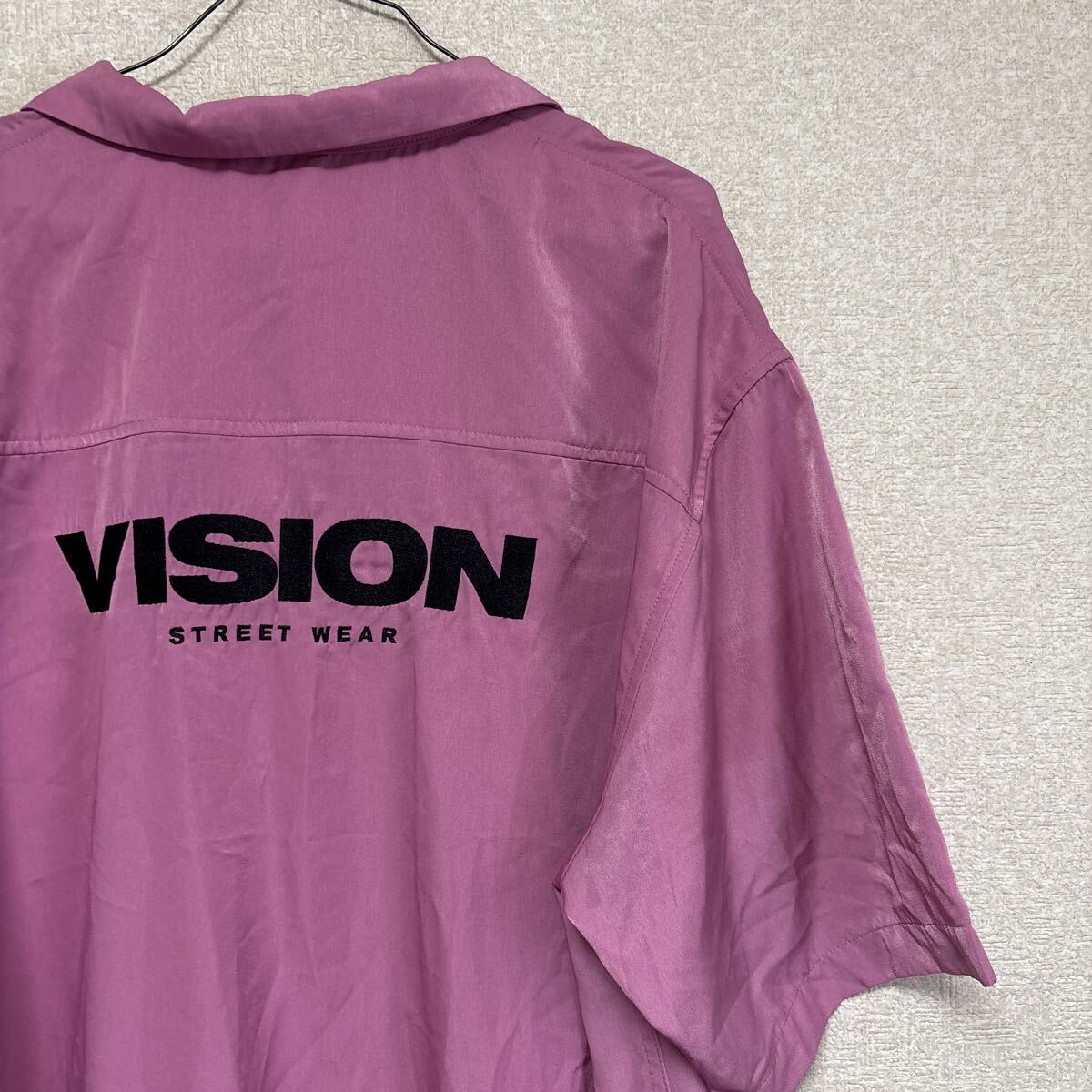 - 【ビッグシルエット】 VISION STREET WEAR 半袖開襟シャツ メンズ3L ピンク 刺繍 背中ビッグロゴ テロテロ生地
