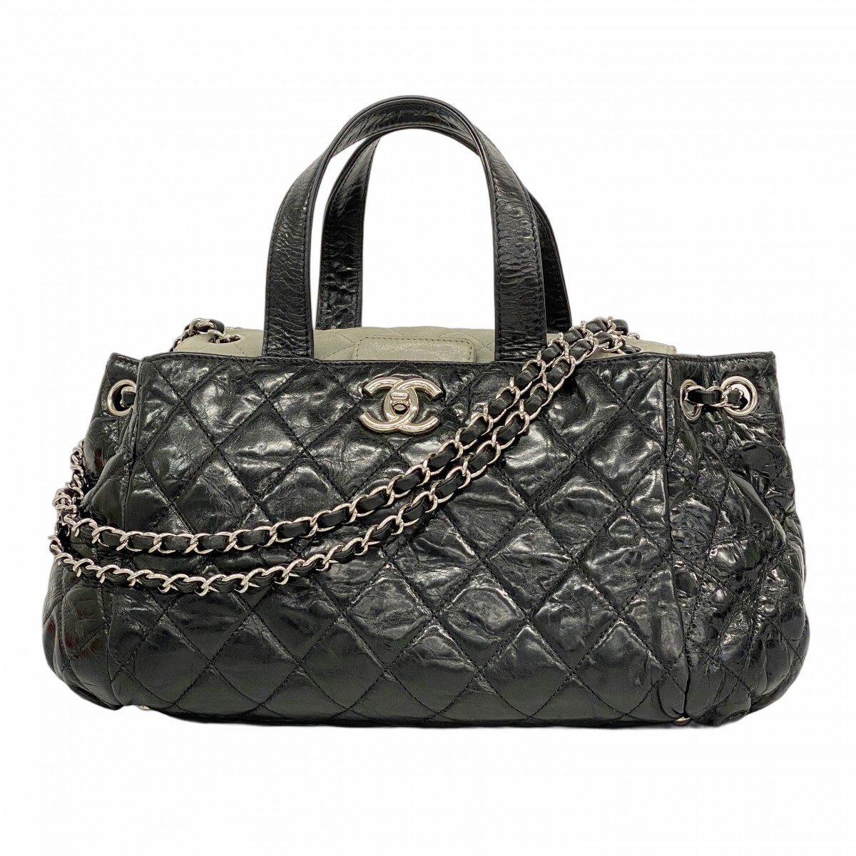 - 【5me5870-h】シャネル ハンドバッグ マトラッセ チェーンショルダー カーフスキン ブラック グレー シルバー金具 2wayバッグ