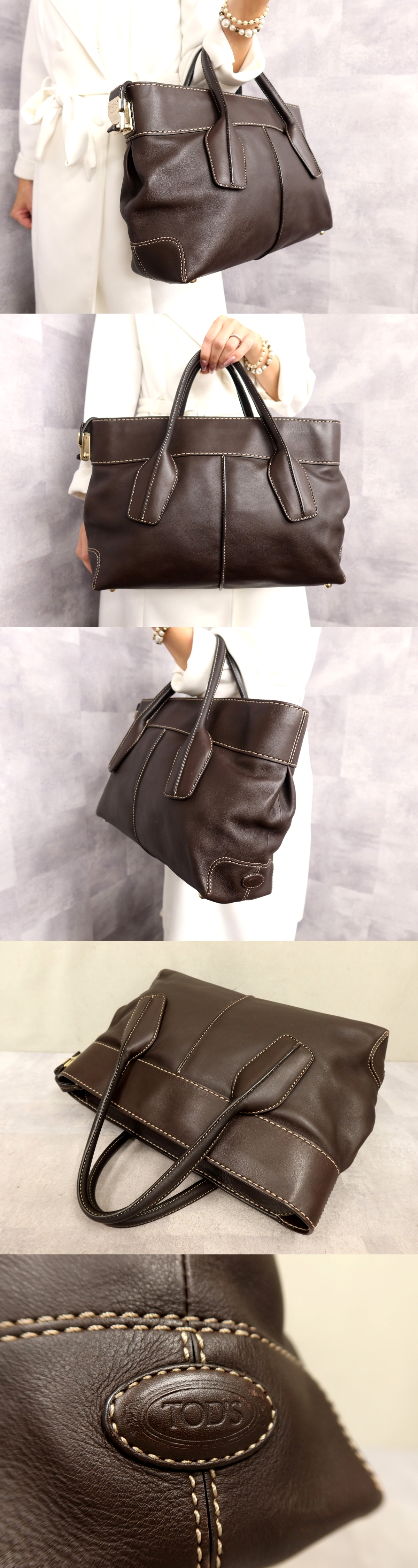 > ●超美品●TOD'S トッズ●Dバッグ●カーフ レザー 本革●トート バッグ●ブラウン●ゴールド金具●腕掛け●A4 書類 収納 かばん●Js61933