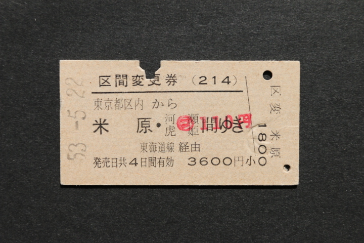 - 乗車券 区間変更券 東京都区内から 3駅間ゆき 3600円