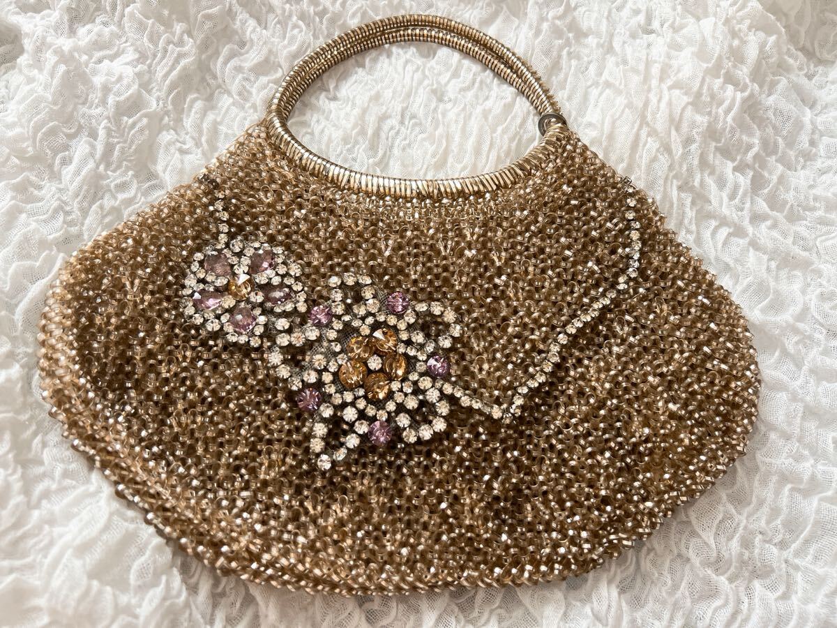 > ANTEPRIMA (アンテプリマ)花ビジュー付きゴールドハンドバッグ ストーン パーティー 二次会 結婚式