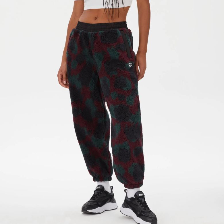 > プーマ US:M レディース DOWNTOWN AOP シェルパ パンツ 定価11000円 ブラック エンジ グリーン ボア L相当