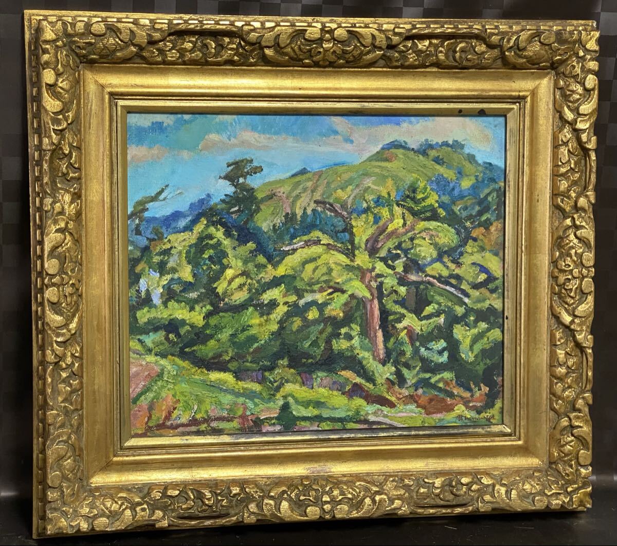 - 真作 油彩画 油絵 二宮雪夫 奈良高畑 風景画 愛媛県 直筆サイン 額縁 インテリア 額装